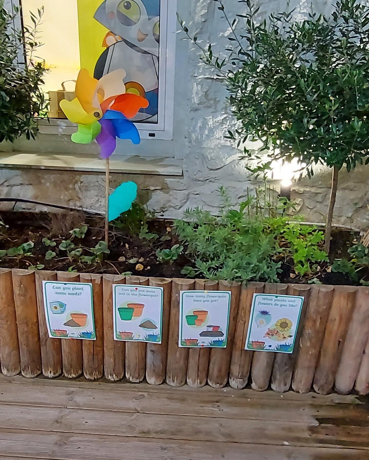 Τα παιδιά έρχονται καθημερινά σε επαφή με την αγγλική γλώσσα μέσα από τραγούδι, παιχνίδι, παραμύθι, κατασκευές και βιωματικές δραστηριότητες.